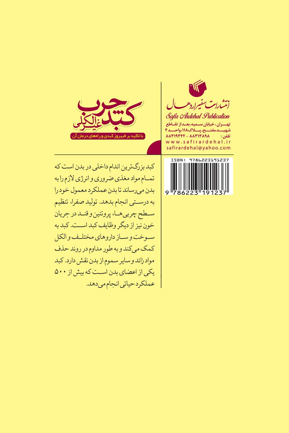 کبد چرب یکی از شایع‌ترین بیماری های کبد است که به دلیل تجمع چربی در آن به وجود می آید و از انواع آن می توان به کبد چرب غیر الکلی اشاره کرد که به علتی غیر از مصرف الکل مانند ژنتیک، چاقی، دارو و … ایجاد می‌شود. این بیماری یک بیماری برگشت‌پذیر بوده و با تغییر سبک زندگی قابل درمان است. کتاب کبد چرب غیرالکی در چهار فصل  به معرفی کبد و شرح وظایف آن، انواع کبد چرب، راه های تشخیص بیماری کبد چرب و فیبروز کبدی، شیوه های درمان آن، علل بیماری کبد چرب در طب سنتی و راه های درمان آن می پردازد.